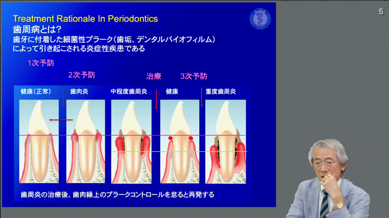 コースでは弘岡先生自身の20、30年の長期症例や歯周病に携わるなら誰もが知っていなければいけない論文から最新のトピックス を解説していただきました。