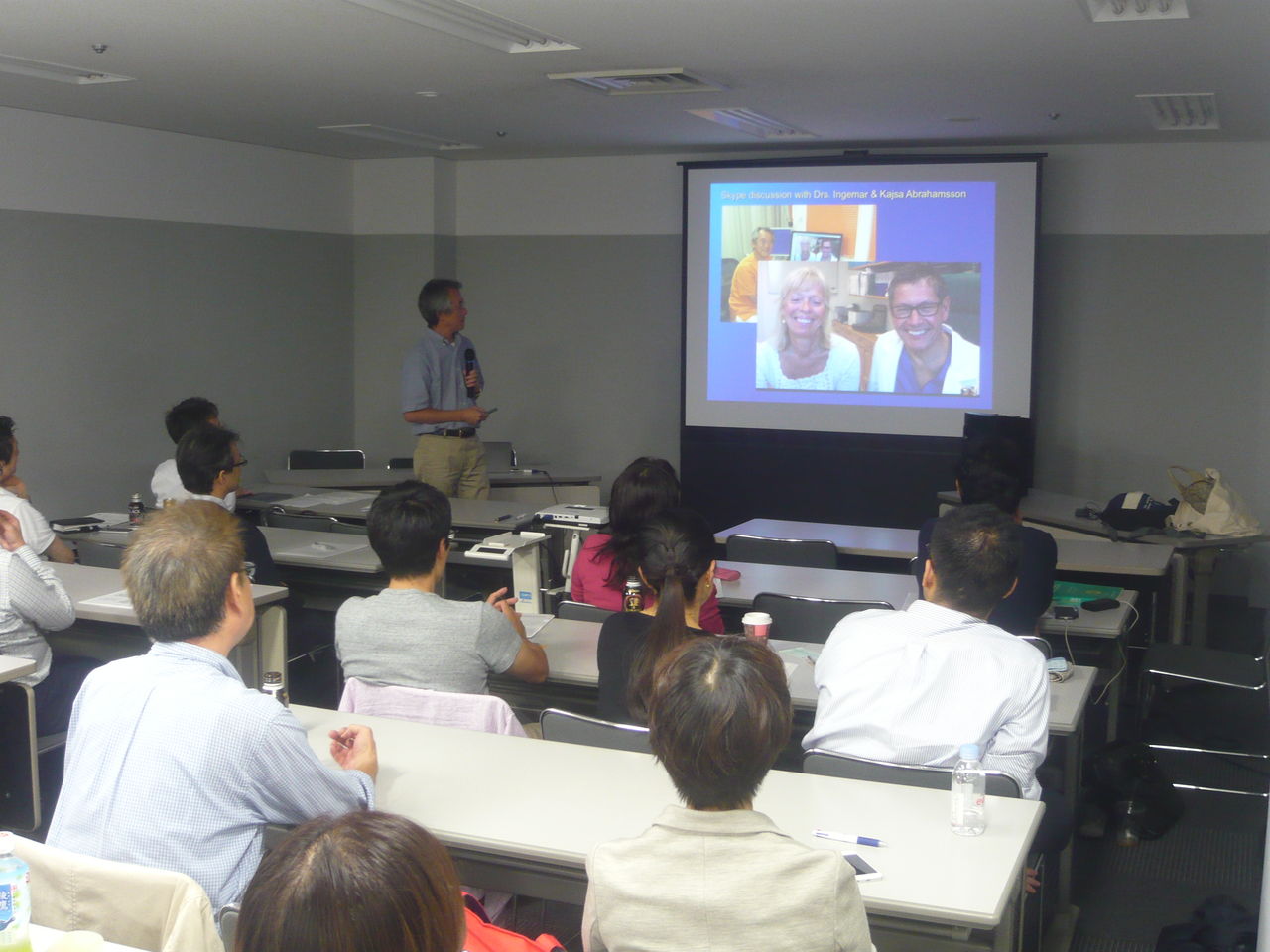 弘岡先生の話を一生懸命聞いている。受講生とも打ち解け、休み時間も楽しんでいるようでした。