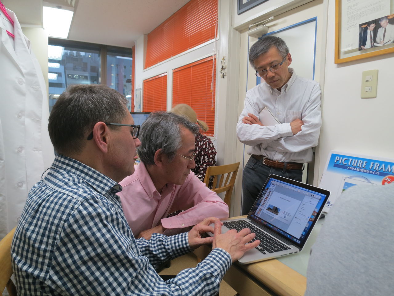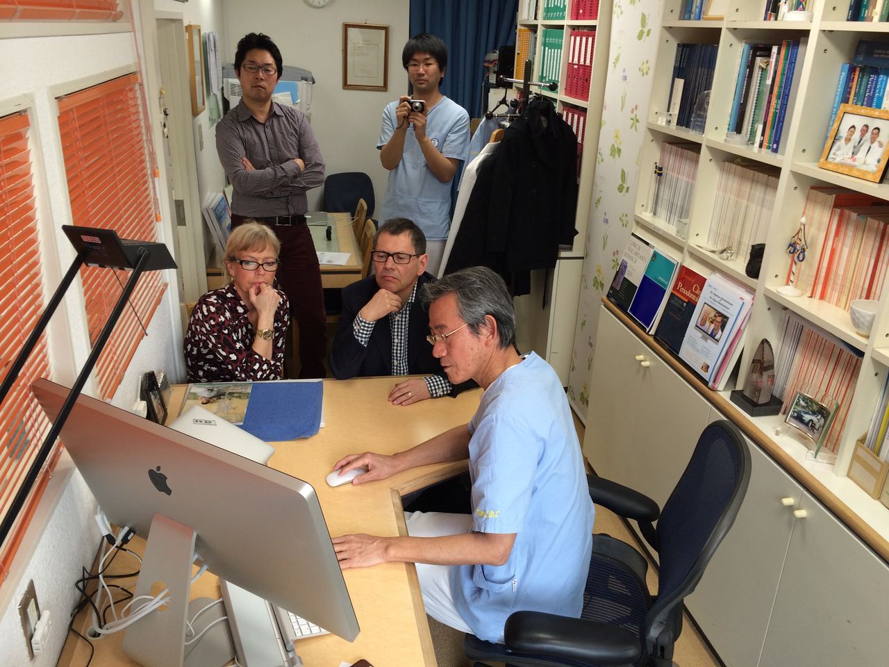 本日は、SDCにスウェーデンからDr. Ingemar AbrahamssonとDr. Kajsa Abrahamssonのご夫妻がいらっしゃいました。明日に迫った弘岡秀明ペリオコース20 周年記念講演会のための来日です。座長の鶴屋先生や通訳の伊藤先生を交えて、スライドの修正などを行っていました。詳しい内容は明日のからのお楽しみですが、2日間しか話がきくことができないのがもったいないと思えるほどの内容でした。