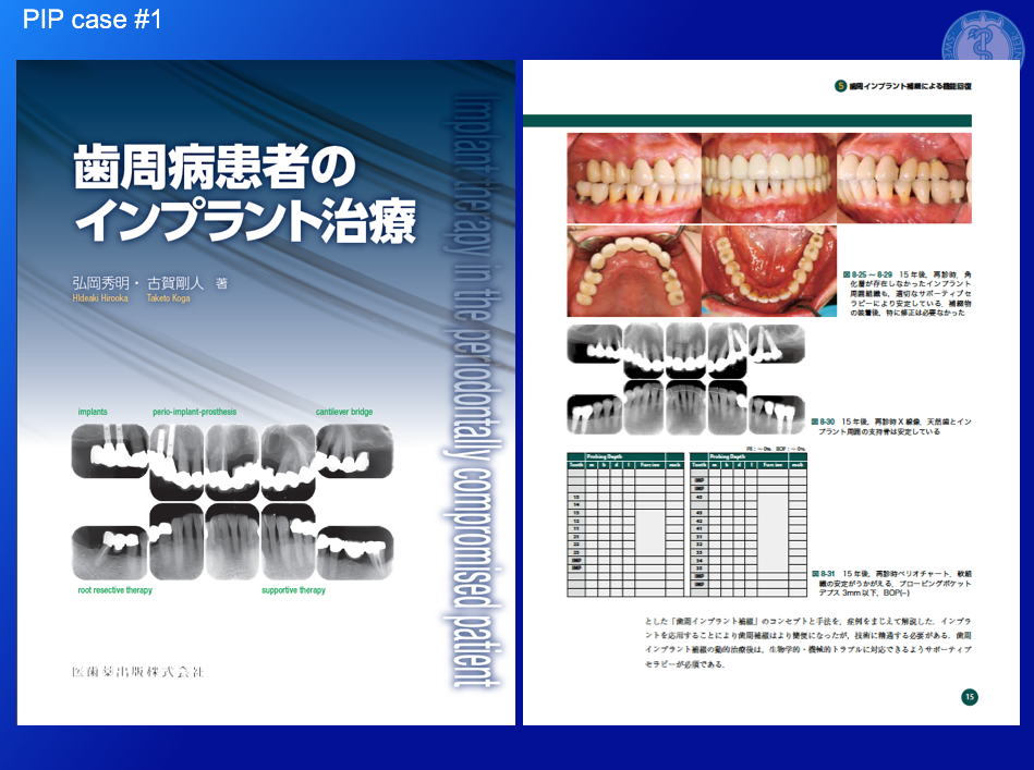 歯周病患者にインプラントを用いる場合は、インプラント周囲に問題を起こしやすいので、適切な術後管理は必須となります。患者にも治療前にメインテナンスが必須であることを説明しておかなければなりません。