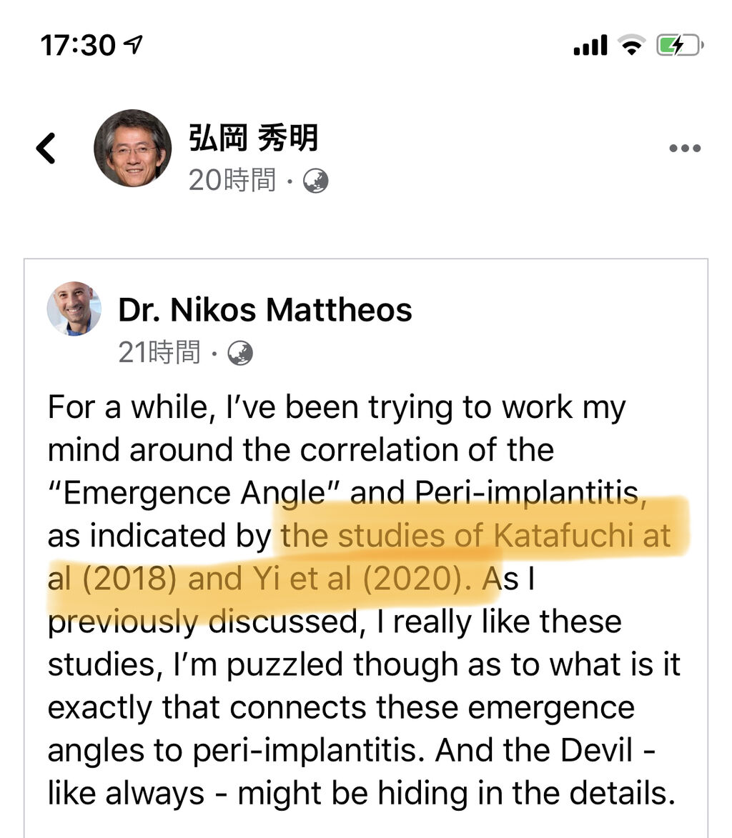 まずは志村先生による弘岡先生の同級生であるSerino先生のスウェーデンの専門病院におけるインプラント周囲炎治療後の10年フォローアップ論文をスマートに解説していただきました。